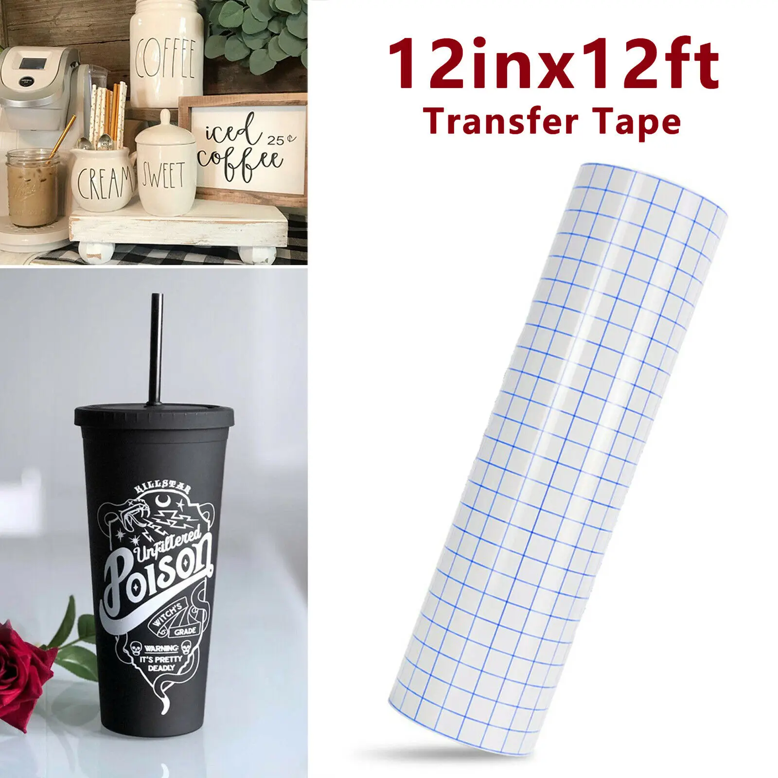 Cricut-kompatibel – 3,6 Meter Transferfolie mit Ausrichtungsgitter (transparent & selbstklebend)